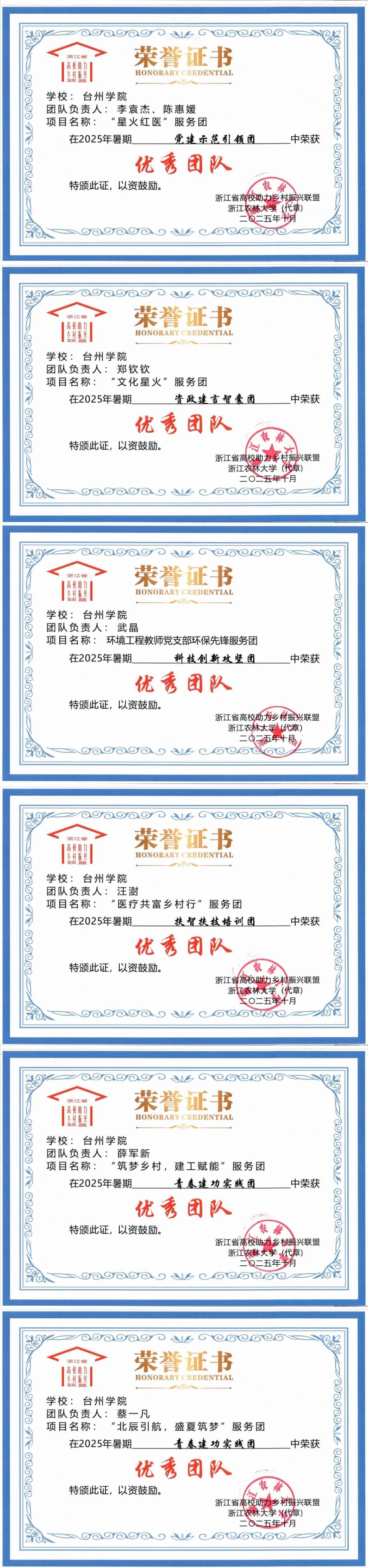 All six teams recommended by Taizhou University received the “Zhejiang Provincial Outstanding Summer Rural Revitalization Service Team” award according to the 2025 selection results for outstanding summer rural revitalization service t...