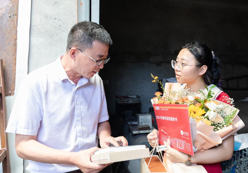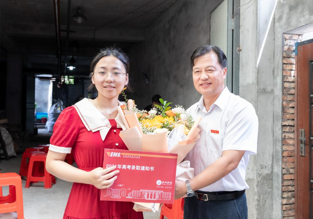 On the morning of July 16, president Chen Guangting came to Yuhuan county to deliver TU's first admission notice of 2021 he signed by hand to candidate Zheng Biyao in Longxi town in the company of executive vice mayor Ke Shoujian.
