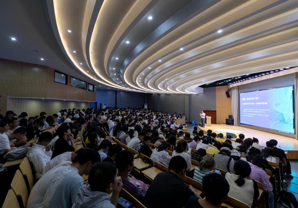 On October 13, 2021, the 1stlecture of the third season of the lecture series “Book Fragance onCampus” (the 82ndlecture in total)is delivered at the Student Activity Center of Jiaojiang Campus.Chen Guangting,president ofTaizhou University,is invited as the first guest speaker of this semester to give a lecture on systems thinking.The lecture is attended by Wu Guoqing, a member of the CPC Taizhou University Committee and Secretary of the Discipline Inspection Committee of the university.Nearly 500 students and faculty members participate in the lecture.