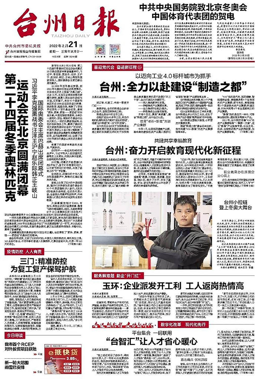 At the Beijing Winter Olympics, the zipper on the Chinese athletes' podium-wear was provided by Zhejiang Weixing Industrial Development Co., Ltd. Zhang Zixin, the designer of this work, is a 2020 graduate majoring in product design from School of Art and Design at Taizhou University. This zipper design fully considers Chinese elements. The magnetic suction buckle is inspired by the C-shaped jade dragon of Hongshan culture, which is known as "the first jade dragon in China". The shape is smooth, simple and beautiful. The pull piece is inspired by dragon jade fragments and wrapped with transparent renewable materials, which echoes with the magnetic suction buckle.