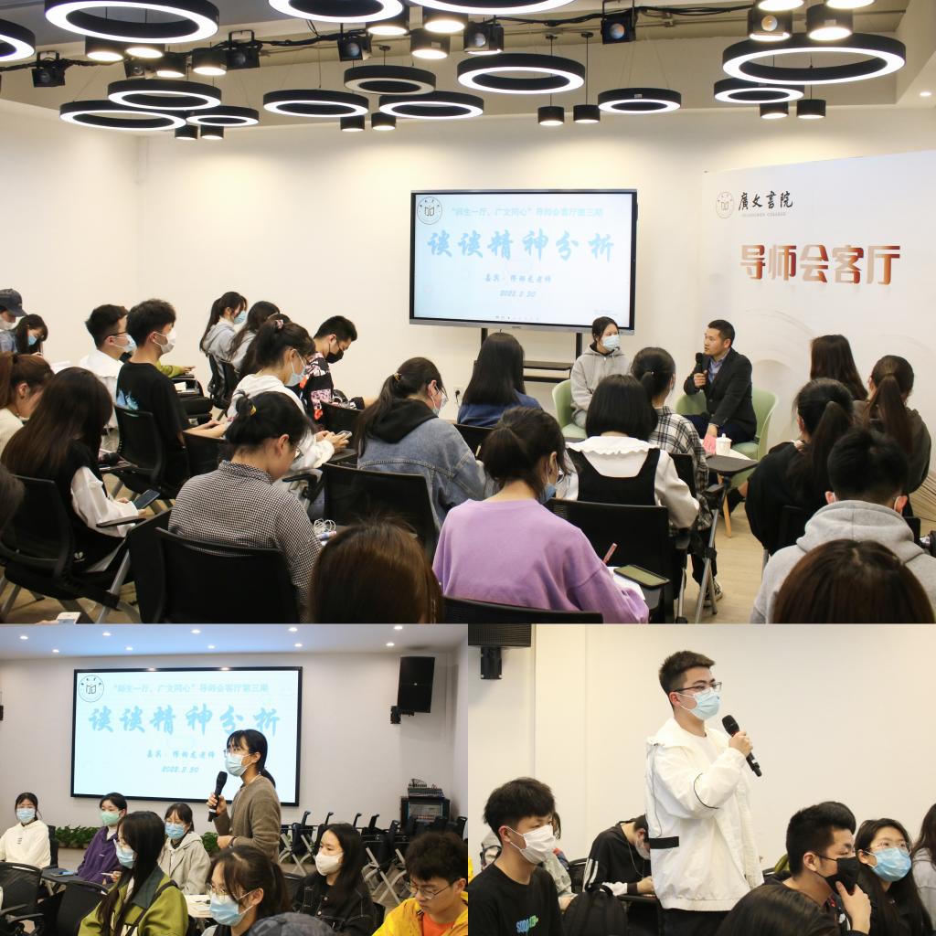 On the evening of March 30, the third episode of Tutor’s Lounge of Guangwen College was held in the Multi-function Hall of the College. Tutor Miao Yulong had a face-to-face communication with the students with the theme of psychoanalysis, and the College student Wu Kangting presided over the activity.