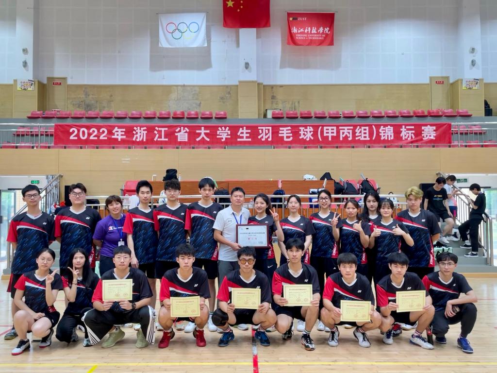 The 2022 Zhejiang University Badminton Championship (Group A and Group C) was held in Zhejiang University of Science and Technology from June 7 to 10. A total of 65 teams from 54 universities participated in the competition. Our badminton team led by Shen Jianmin, Pan Beibei and Wang Junjie participated in the men's team, women's team and men's doubles and achieved good results.