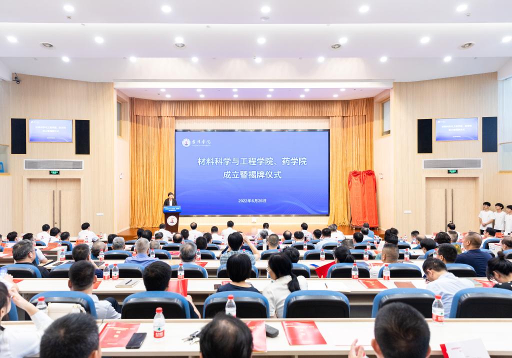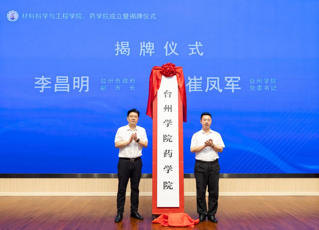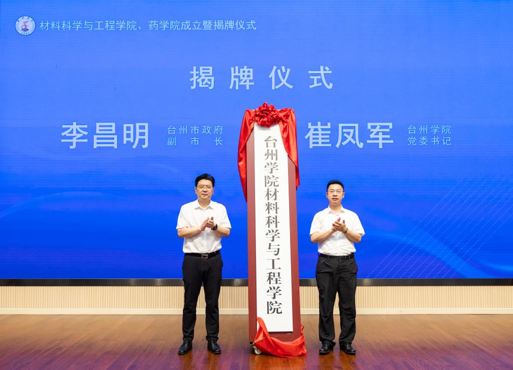 On June 26, the founding and unveiling ceremony of the School of Materials Science and Engineering and the School of Pharmacy of Taizhou University was held in the International Conference Hall. Li Changming, Vice Mayor of Taizhou, and Cui Fengjun, Secretary of the CPC Committee of Taizhou University jointly inaugurated the School of Materials Science and Engineering and the School of Pharmacy.