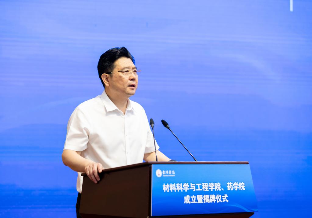 At the ceremony, Li Junmin read out the approval documents and appointment notices of the School of Materials Science and Engineering and the School of Pharmacy. Zhu Liu, Deputy Dean of the School of Materials Science and Engineering, and Hu Jinfeng, Dean of the School of Pharmacy spoke respectively. Universities including Peking University, Fudan University, and Zhejiang University of Technology sent congratulatory letters.