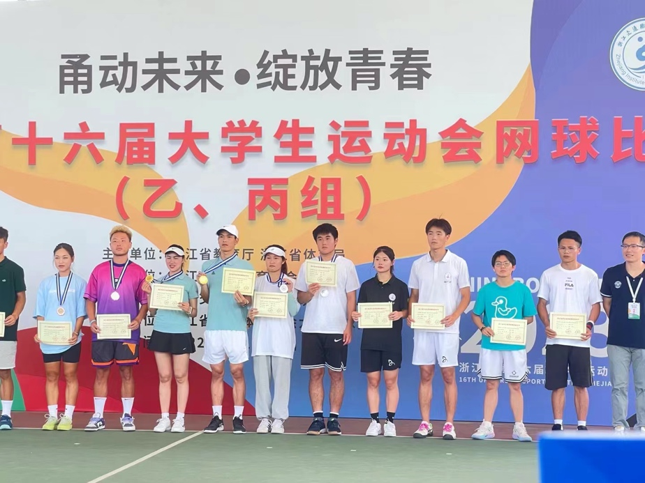 The tennis match (Group B and Group C) of the 16th Zhejiang University Games in 2022 was held at Zhejiang Institute of Communications from June 18 to 23, attracting a total of 497 participants from universities and colleges in the province. The TU tennis team participated under the leadership of Yu Weijun, Guo Xuzhou and Zhu Xiangan, and achieved good results.
