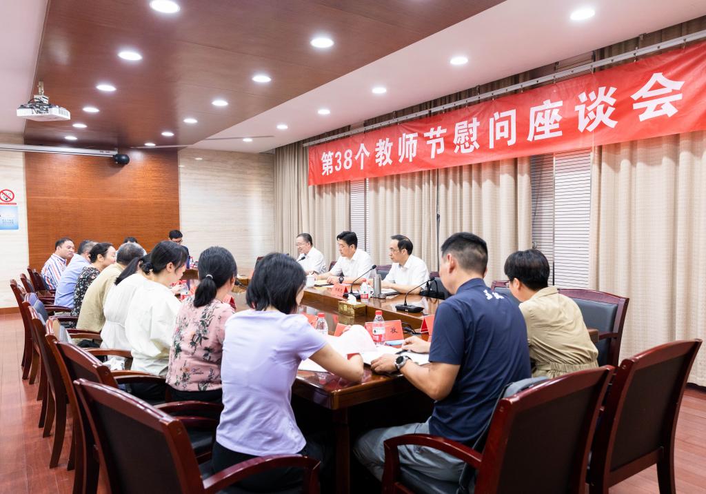 On the afternoon of September 8, TU held a symposium on both campuses to celebrate the 38th Teachers' Day as well as the Mid Autumn Festival. Cui Fengjun, Secretary of the CPC Committee of Taizhou University, and Le Chuanyong, Vice Secretary of the CPC Committee and President of Taizhou University attended the meeting and delivered speeches. The symposium was chaired by Zhao Xiaoming and Wang Zheng respectively, who are a member of the CPC Committee and Vice President of Taizhou University. School leaders Pan Tongtian, Jin Xianlong, Hu Shaoguang, Li Junmin, Li Weiming and Yang Jianguo also attended the meeting.