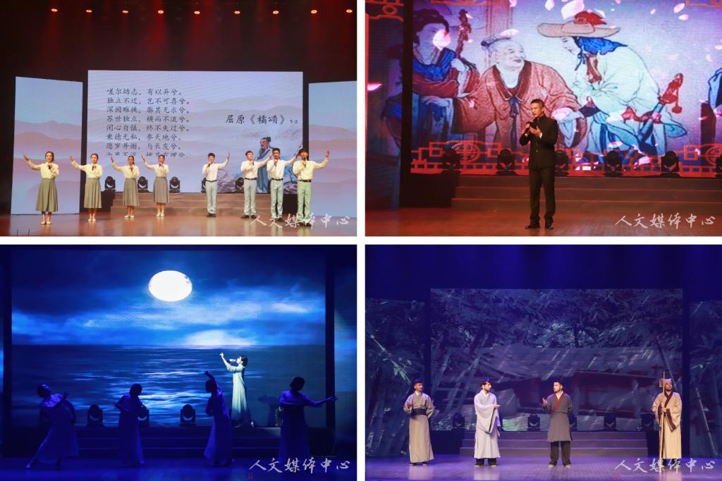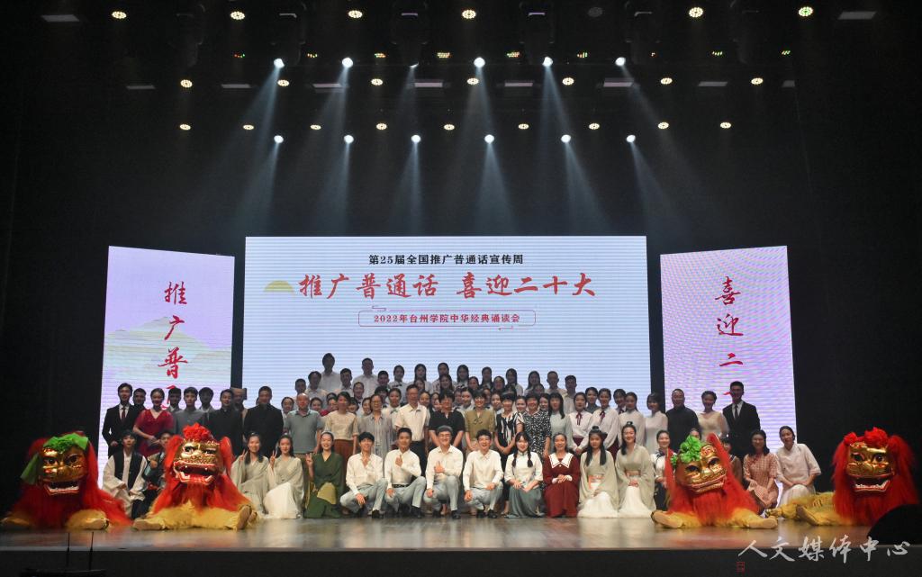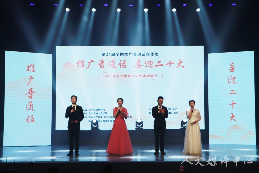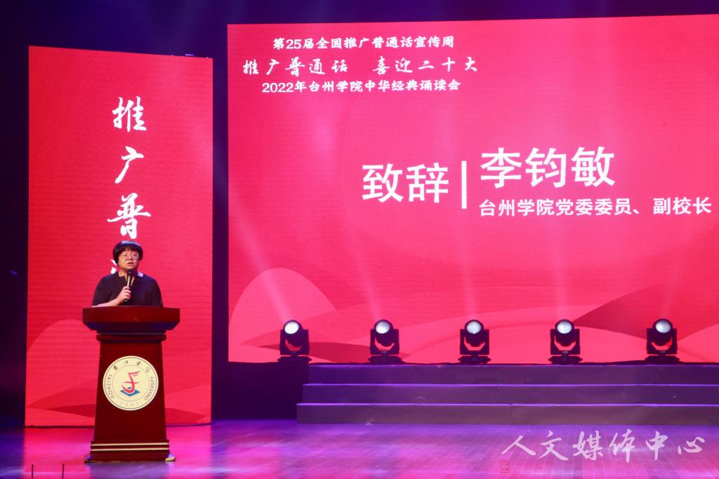 On the evening of September 17, Chinese Classics Recitation, an activity of the 25th National Putonghua Promotion Week, was held in the auditorium of Linhai Campus of Taizhou University. This recitation was hosted by the Academic Affairs Department of Taizhou University, undertaken by the School of Humanities of Taizhou University, and co-sponsored by Jin Niya Studio, Linhai Speech and Recitation Association, Qin Yude Intangible Cultural Heritage Inheritance Master Studio, and Feng Ya Recitation Club. Wang Zheng and Li Junmin, members of the CPC Committee and vice presidents of Taizhou University, and Jin Song, member of the CPC Committee and head of the Publicity Department of Taizhou University, attended the event.