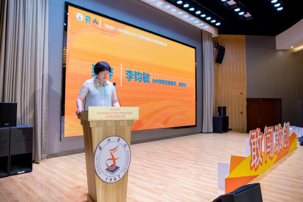 On the afternoon of September 24, the final of the project elimination for the 2022 Entrepreneurial Park of Taizhou University was held in the Student Activity Center of Jiaojiang Campus. Li Junmin, member of the CPC Committee and vice president of Taizhou University, Zhou Yao, head of School of Entrepreneurship, Huang Guobo, deputy head of School of Entrepreneurship, and Shao Zhineng, project manager of Zhejiang Chengxin Medical and Chemical Equipment Co., Ltd. attended the activity. Pang Jinxin, Chairman of Taizhou Lianhe Zongheng Enterprise Management Consulting Co., Ltd., Feng Renfang, founder of Yumanyuan, and other entrepreneurs in Taizhou City acted as experts on the final.