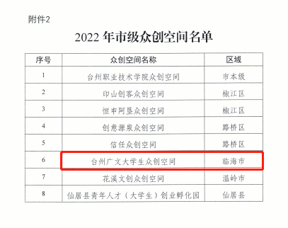 On September 30, Taizhou Guangwen College Students' Mass Innovation Space was rated as the 2022 Municipal Mass Innovation Space after Taizhou Municipal Science and Technology Bureau organized relevant experts to review the materials and conduct on-site evaluation.