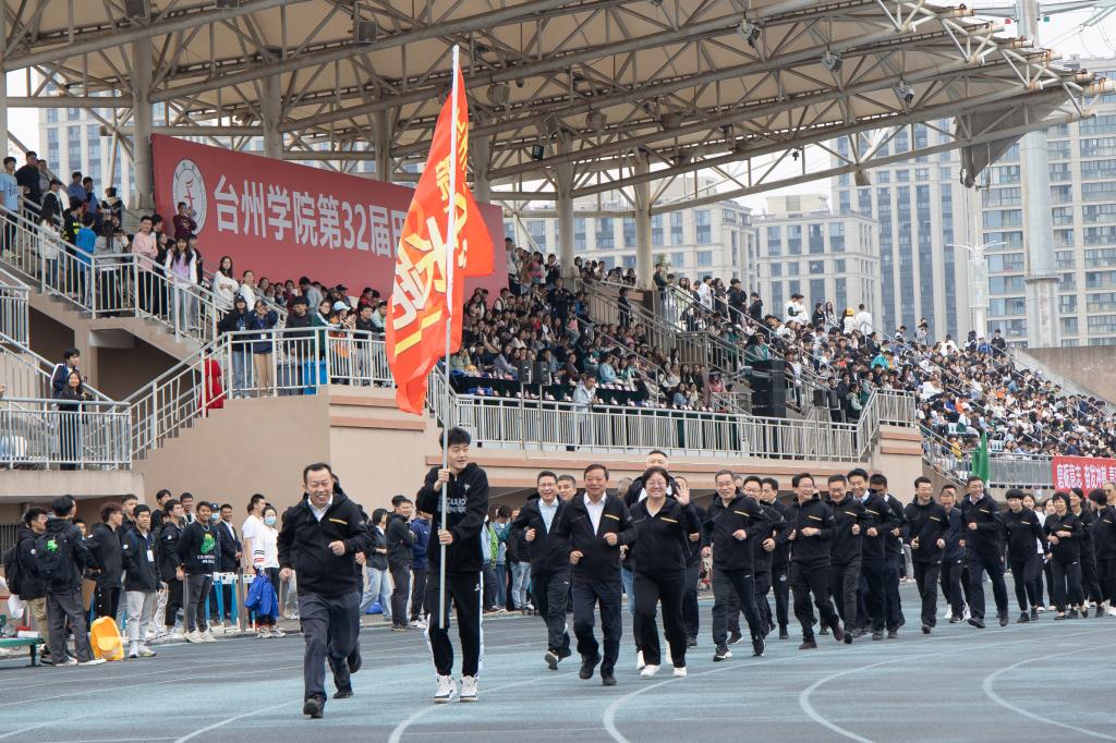 On the morning of October 27, the 32nd Taizhou University Track and Field Games opened in Jiaojiang Campus. Cui Fengjun, Secretary of the CPC Committee of Taizhou University, announced the opening of the Games. Le Chuanyong, Vice Secretary of the CPC Committee and President of Taizhou University delivered a speech. Jin Xianlong, Vice Secretary of the CPC Committee of Taizhou University, and Wang Zheng, member of the CPC Committee and Vice President of Taizhou University, attended the opening ceremony. Li Junmin, member of the CPC Committee and Vice President of Taizhou University, presided over the ceremony.