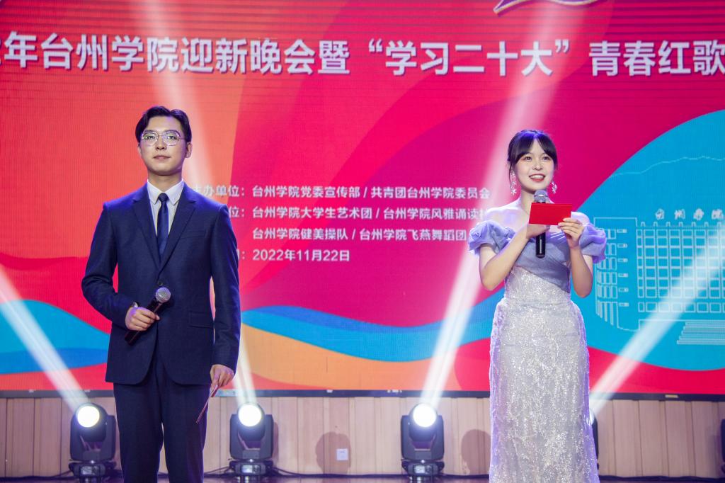 On the evening of November 22, the 2022 Welcome Party for New Students and the Red Song Festival were held in the Concert Hall of the School of Art and Design in Jiaojiang Campus. The attendees include Le Chuanyong, Vice Secretary of the CPC Committee and President of Taizhou University, Li Weiming, member of the CPC Committee and Secretary of the Discipline Inspection Commission of Taizhou University, and Jin Song, member of the CPC Committee and head of the Publicity Department of Taizhou University.