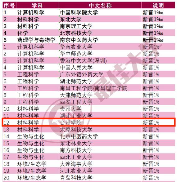 On January 12, the latest ESI university ranking was released. Taizhou University’s material science entered the top 1% of ESI global discipline, which is the second top 1% of the world's discipline after TU's chemistry discipline entered the top 1% in November 2021.