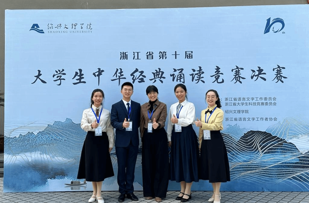 Previously, our school performed brilliantly in the 10th Chinese Classics Recitation Competition for College Students in Zhejiang Province and won many awards. In the individual group finals, Zhou Fan, Chen Siyu and Xia Yushi won the first prize; Li Zhiyun won the second prize; Zheng Biyao, Fan Keyi, Wang Nuoyi and Hu Yixuan won the third prize. Five teachers, Jin Niya, Zhang Jie, Wang Xin, Cheng Xiangrong and Lin Xian, won the title of excellent instructor, and Taizhou University won the award of excellent organization.