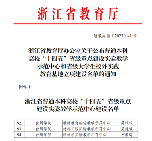 Recently, the Provincial Department of Education announced the construction list of provincial key experimental teaching demonstration centers for the "Fourteenth Five-Year Plan". Three TU experimental centers were among them, including "Experimental Teaching Demonstration Center for Teacher Education", "Experimental Teaching Demonstration Center for Material Engineering" and "Experimental Teaching Demonstration Center for Design" .