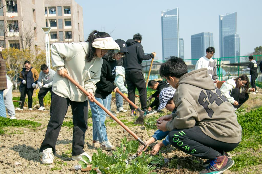 The students turned over the land in the fields, sowed spring seeds and watered for irrigation. Associate professor Li Yueling, the instructor of the Reclamation and Spring Planting, came to the field to give detailed guidance based on his own experience, answer the students' questions and enrich their farming knowledge.