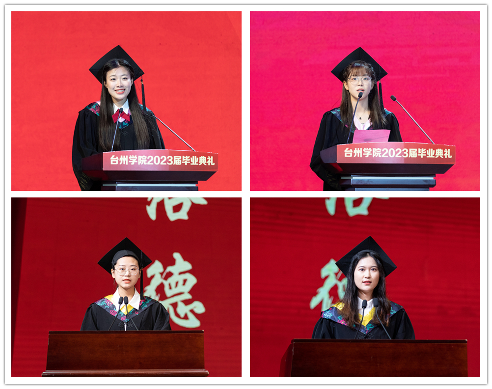 Representatives of graduates Li Hongyu, Lu Jialing, Wang Zhiyue and Yu Liwen are giving speeches.