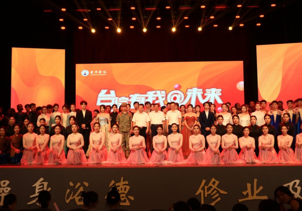 At nights of September 20 to 21, Taizhou University has successfully held the evening party for freshmen and their military trainers under the theme “TU has me @ Future”. The events took place in the auditorium of the Linhai campus and the huge auditorium of the Jiaojiang campus, respectively. Le Chuanyong, Deputy Secretary of the CPC Committee and President of Taizhou University, Jin Xianlong, Deputy Secretary of the CPC Committee, Jin Song, Member of the CPC Committee and Director of the Publicity Department, Wang Rong and Yang Fengxiang, the heads of the military training units on both campuses, attended the party. Various functional departments, leaders and teachers from secondary schools, military trainers, and over 2,000 freshmen of the year 2023 were present to watch the performances.