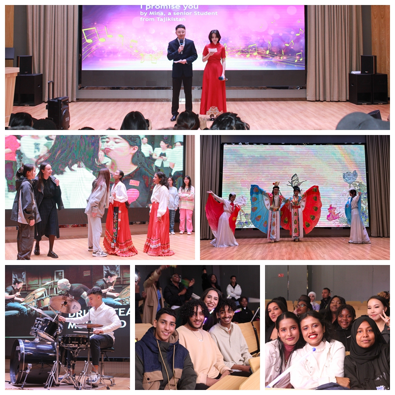 The night's lineup was an exciting mix of performances, each one outshining the last. Standouts included the Bangladeshi trio—NUSRAT SHAKERA (Chinese name: Xiaqila), KEYA TOWFIKA HASAN (Chinese name: Kaiya), and SIAM TANVIR AHMED (Chinese name: Saian)—fusing their country's traditional dance with hip-hop, delivering a uniquely creative dance piece. EMEKA MARYANN CHINAZA (Chinese name: Zhan Shimin) from Nigeria and NGABA EYENGA JUDITH LAURE MICHAELA (Chinese name: Mikela) from Cameroon set the stage ablaze with a passionate dance mashup, showcasing not just their exceptional dance skills but also their personal charisma. Moroccan student EL BACHRIA MOHAMED (Chinese name: Zhou Yang) stole the show with a mesmerizing drum performance, even elevating the energy by performing blindfolded in the latter part.