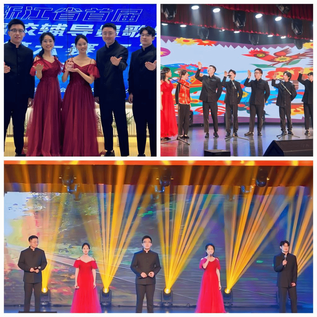 In order to strengthen the construction of the counselor team in higher education institutions and leverage the leading role of counselors in the development of students, the qualifying rounds of the first Zhejiang provincial college counselors’ singing contest were held in Wenzhou on November 17. The singing team “Taikoola” (which means so cool), including five counselors and five students, participated in the event and won the “Best Tacit Understanding Award”.