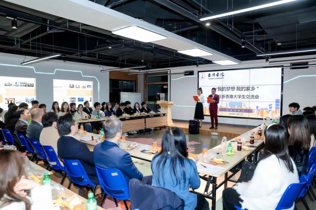 The exchange meeting between Hong Kong students in Zhejiang and students at Taizhou University was held at the Multi-function Hall of the Entrepreneurship Park at Taizhou University on the evening of November 27th. Liu Mingde, Director of the Liaison Office of the HKSAR Government in Zhejiang Province, Li Junmin, Member of the CPC Committee and Vice President of Taizhou University, Liu Wenhui, Secretary of the Party Group of the Taizhou Municipal Hong Kong and Macau Affairs Office, and He Guozhang, Member of the CPCCC Taizhou Municipal Committee and General Manager of the Yaoda Hotel in Wenling, attended the event. Wei Bangpeng, a second-year doctoral student from Zhejiang University, and Qiu Yu, a student from Taizhou University, hosted the activity. Leaders from the Liaison Office of the HKSAR Government in Zhejiang, the Taizhou Municipal Hong Kong and Macau Affairs Office, as well as the United Front Work Department, the Youth League Committee, and the Hong Kong, Macau and Taiwan Affairs Office of Taizhou University, and nearly 50 representatives of Hong Kong students in Zhejiang and students at Taizhou University, attended the event.