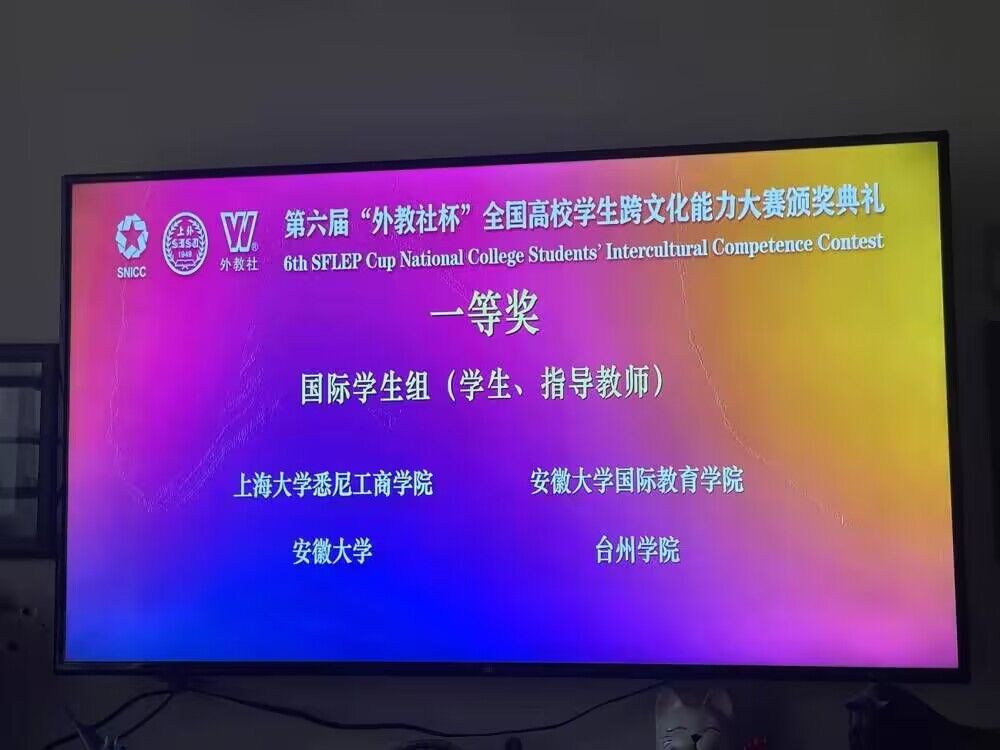 Three international students from Taizhou University, RAKHMATOV SHERZOD (Chinese name: Milannuo), TUYCHIEV ABDUNABI (Chinese name: Muyang), and ASHIROVA GULBAKHAR (Chinese name: Qifan), won the National First Prize of International Student Group in the 6th SFLEP Cup National College Students’ Intercultural Competence Contest, breaking the record of the university’s performance in this contest. The final results of the contest were announced on December 3rd.