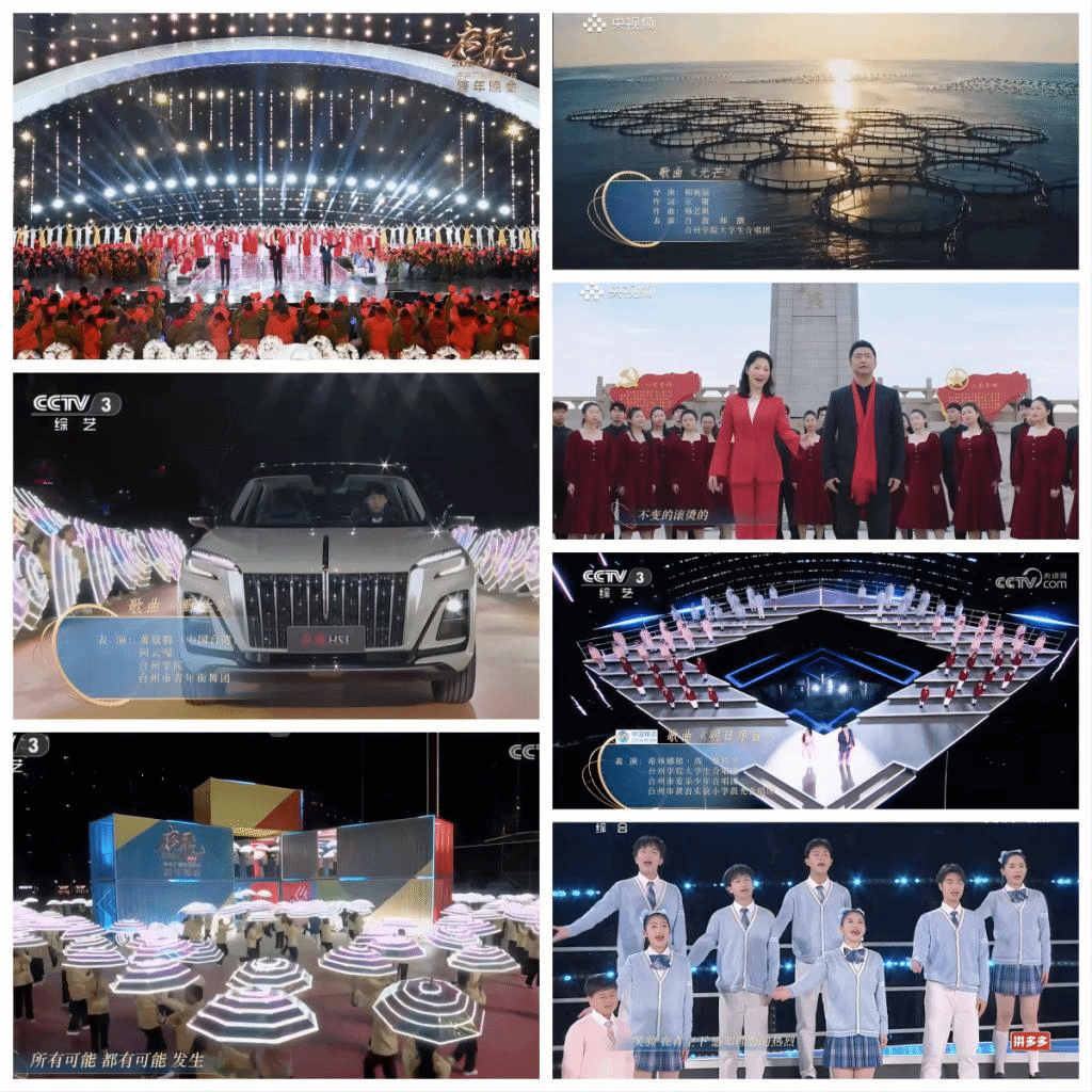 The CCTV New Year’s Gala titled “Setting Sail for 2024” was recorded in Jiaojiang District, Taizhou City from December 2nd to 21st. Themed “Harmony, Shared Dreams, Setting Sail for a Better Tomorrow,” the gala vividly showcased the vision of the people of Taizhou for a better life and their determination to open up new prospects. 1,370 student volunteers from Taizhou University played an important role in the gala.