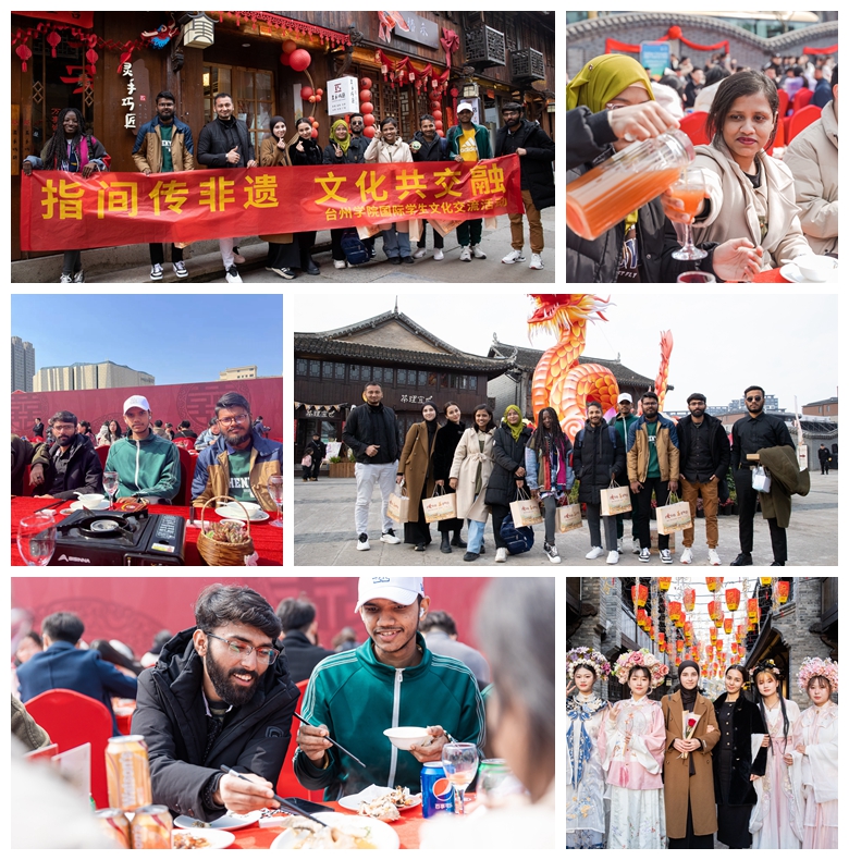 The banquet was a “ginger”-flavored feast, which was a completely new experience for the international students. They tasted 13 dishes which are characteristic of Taizhou flavor, such as shredded ginger with sea cucumber, steamed yellow croaker with ginger, fish noodles with ginger sauce, and walnut stewed with ginger and eggs, and others. They marveled at the perfect fusion of different ingredients and the “ginger” flavor. In addition to enjoying the delicacies, these international students learned about Chinese traditional culture, appreciated traditional wedding customs, strolled along the 10-mile Street, and took photos at the scenic spots showcasing the ancient Song Dynasty charm. Taizhou is located in the southeast coastal region of China and assumes heavy humidity. In traditional Chinese medicine, ginger is known for its function to dispel cold and dampness. Therefore, people in Taizhou have got into the habit of consuming ginger.