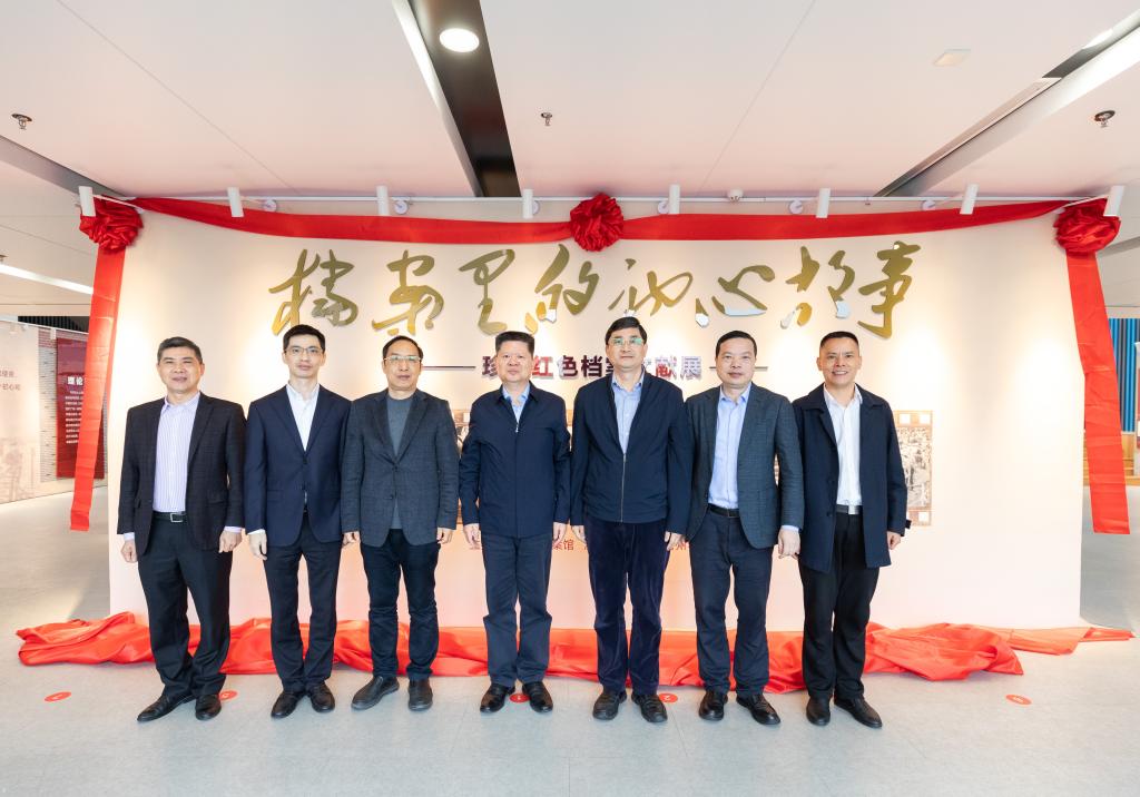 Hu Yuanchao, Deputy Director of Zhejiang Provincial Archives, Zhu Jian, Secretary of the CPC Taizhou University Committee, Hu Shaoguang, Deputy Secretary of the CPC Taizhou University Committee, Zheng Zhimin, Deputy Secretary General of the CPC Taizhou Municipal Committee and Director of Taizhou Municipal Archives, Zheng Hao, Executive Deputy Head of the Publicity Department of the CPC Taizhou Municipal Committee, Wu Guochao, Director of the Party History Research Office of the CPC Taizhou Municipal Committee, and Lin Jianbing, Second-level Researcher of Taizhou Municipal Education Bureau, jointly unveiled the “Where Did We Start?—Exhibition of Rare Revolutionary Archives”.
