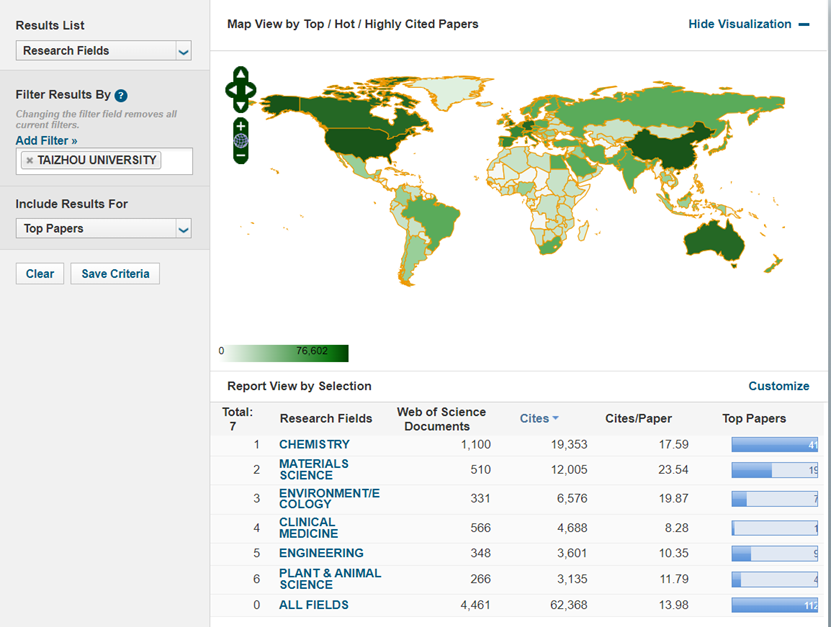 The data showed that in the past ten years, TU has published 4,461 ESI-indexed papers, accruing a total of 62,368 citations, with an average of 13.98 citations per paper. Of the 4,461 papers published, there have been 112 top papers, including 109 highly cited papers and 11 hot papers. In the past ten years, 348 ESI-indexed papers, including 9 top papers and 8 highly cited papers, have been published in the field of Engineering. These papers have received a total of 3601 citations, with an average of 10.35 citations per paper. 266 ESI-indexed papers, including 1 top paper and 4 highly cited papers, have been published in the field of Botany and Zoology. These papers have accrued a total of 3135 citations, with an average of 11.79 citations per paper.