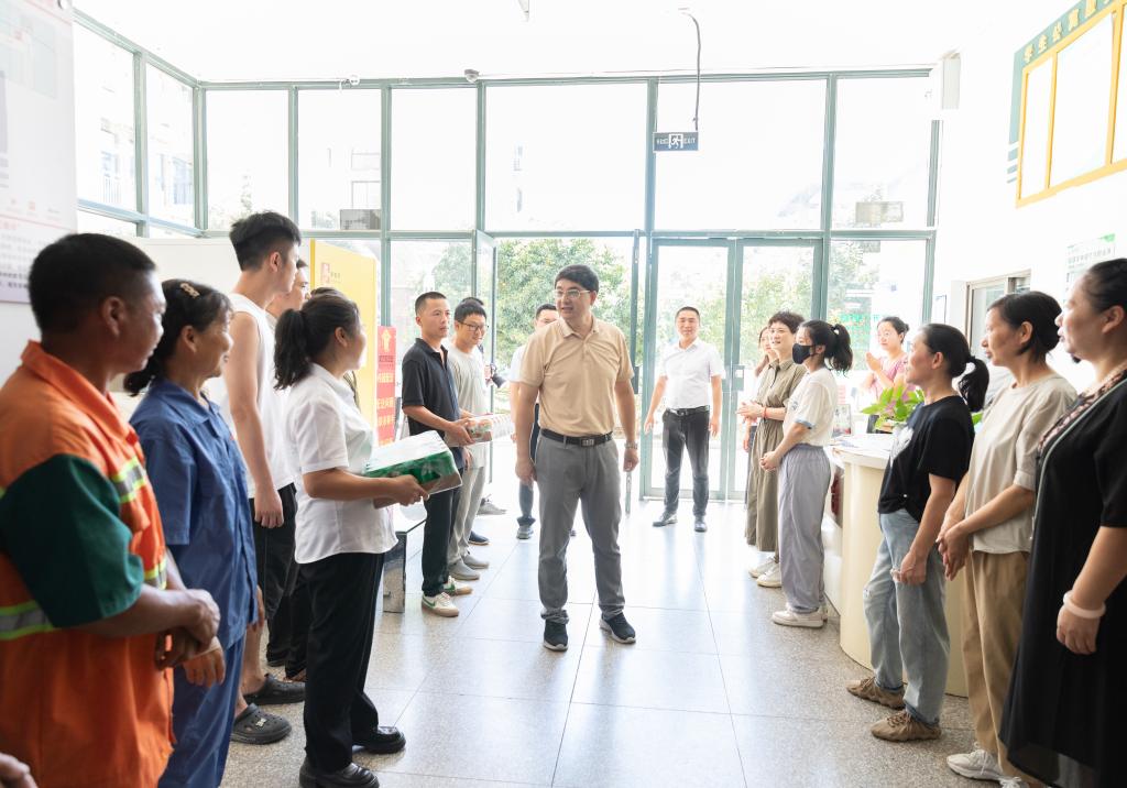 Zhu Jian, Secretary of the CPC TU Committee, went to the two campuses of Jiaojiang and Linhai to visit the staff and students who stayed at their posts during the summer holiday on August 1.