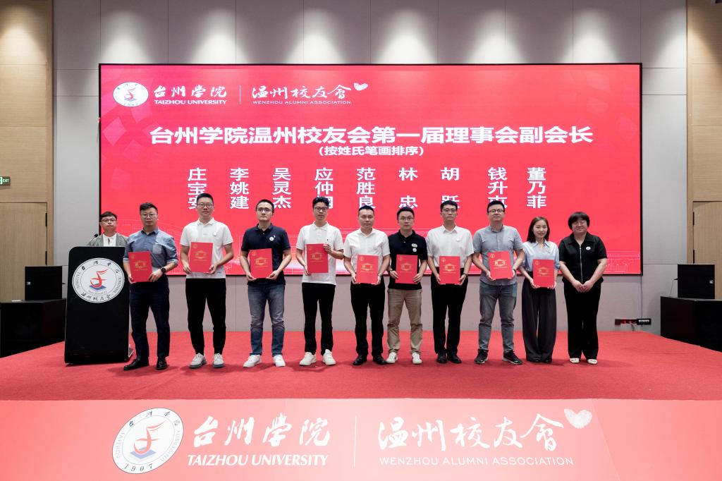 Li Junmin presents appointment letters to the Vice Presidents of the First Council of the Wenzhou Alumni Association of TU