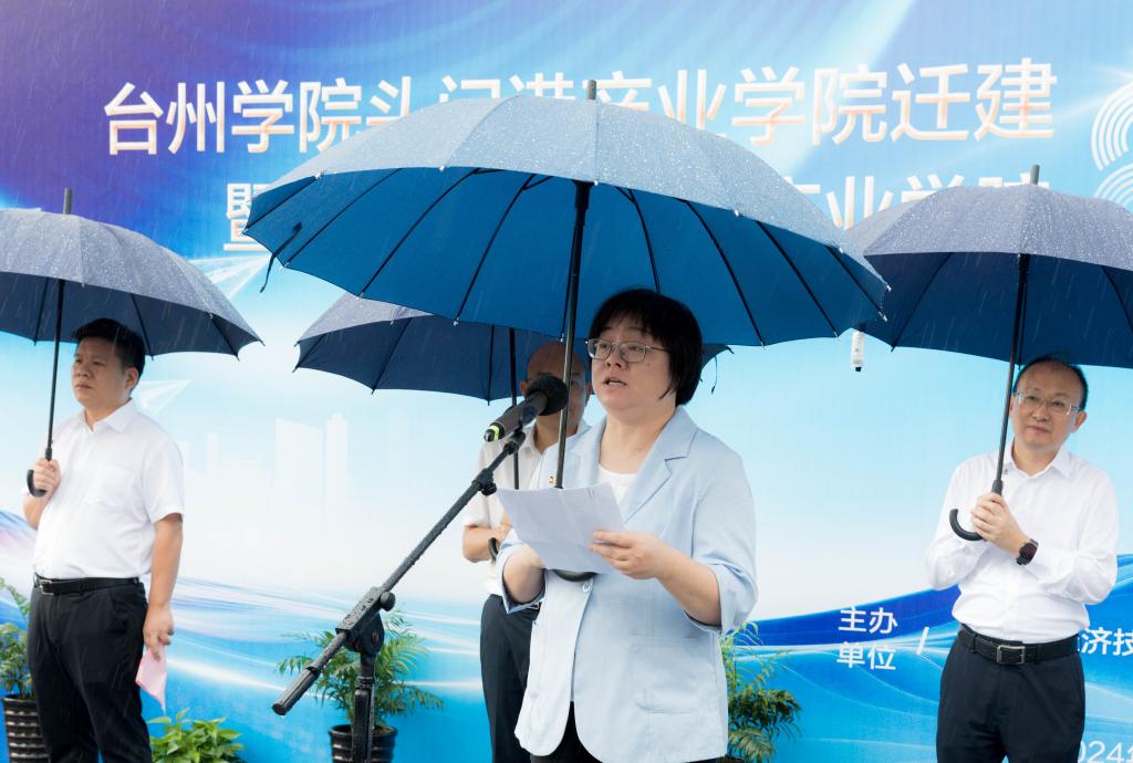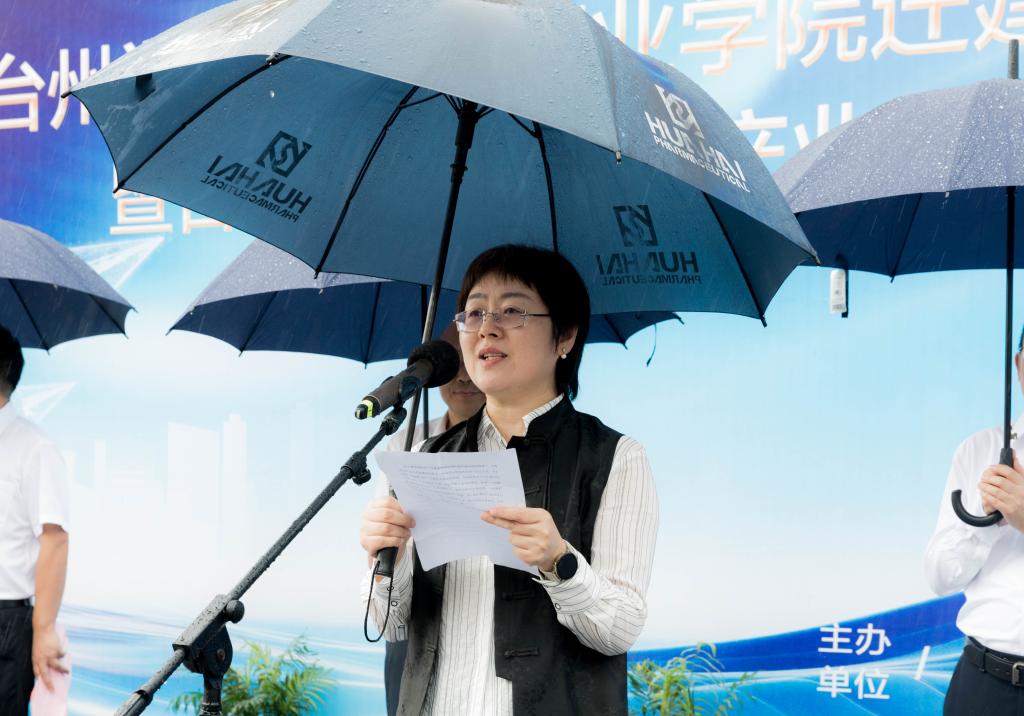Meng Yanhua, General Manager of the API Business Division of Huahai Pharmaceutical Co., Ltd., congratulated TU on the relocation of Toumen Port Industrial College and the establishment of Taizhou Bay Biopharmaceutical Industrial College as a corporate representative. She said that as a local application-oriented university, TU has played a pivotal role in talent cultivation, scientific and technological innovation, industrial upgrading, employment promotion, and social services. She looks forward to further deepening cooperation with the industrial college, jointly cultivating talents, promoting the transformation of scientific and technological achievements, and contributing to the high-quality development of Taizhou’s biopharmaceutical industry.