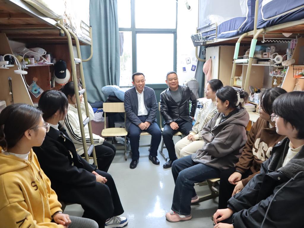 Zhu Jian walked into the dormitory of the students from the School of Teacher Education and exchanged views with the students. “Do you specialize in volleyball or soccer?” “Have you adapted yourself to the life here?” “Do you have any difficulties?” He talked with each student about their hometowns, professional learning, life adaptation and career planning. In response to the opinions and suggestions put forward by the students, Zhu said that he would advise relevant functional departments to adopt the opinions and suggestions put forward by the students in a timely manner.
