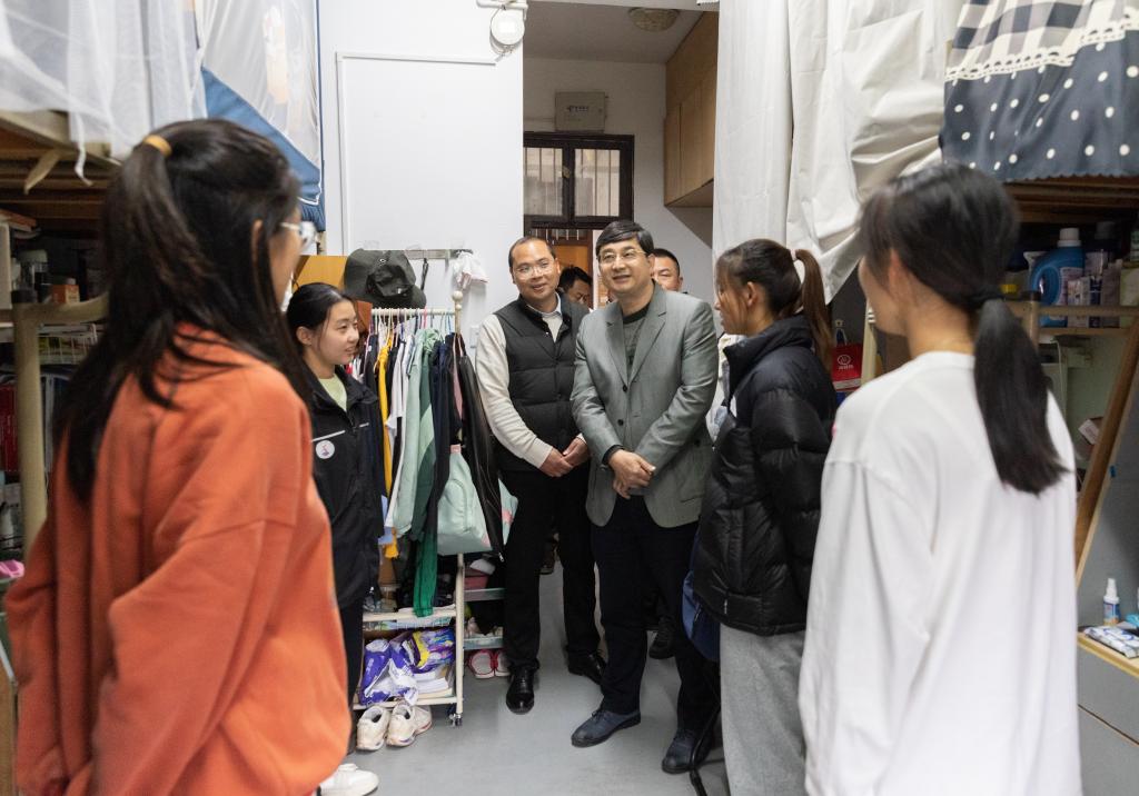 Zhu Jian talks with students in the dormitory