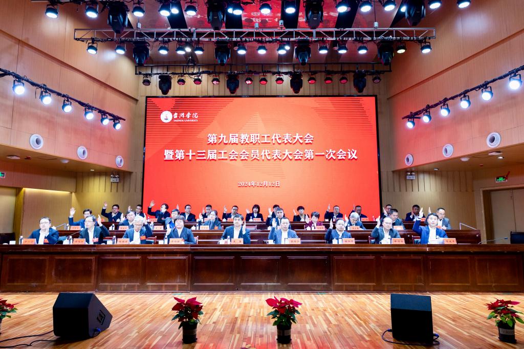 The First Meeting of the Ninth Faculty and Staff Congress & the Thirteenth Workers Union Members Congress of TU was held on December 12. Wang Yuqing, Member of the Standing Committee of Zhejiang Federation of Workers Union, Second-level Inspector and Chairman of Zhejiang Provincial Education Workers Union, Li Guoli, Member of the Party Group and Vice-chairman of Taizhou Federation of Workers Unions, Wang Xiaojian, Member of the Party Group and Deputy Director of Taizhou Education Bureau and Chairman of Taizhou Municipal Education Workers Union, and relevant TU leaders, directors and members attended. Zhu Jian, Secretary of the CPC TU Committee, delivered a speech. Yue Chuanyong, University President and Deputy Secretary of the CPC TU Committee, made a report on the work of the university. Xiang Fengri, Deputy Secretary of the CPC TU Committee, and Ding Yizhi, Deputy Secretary of the CPC TU Committee, presided over the meeting.