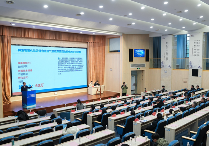 TU Sci-tech Achievement Auction 2024 was held in the International Conference Hall of TU on the afternoon of December 25th. This event was guided by Taizhou Science and Technology Bureau, hosted by TU and co-organized by Zhejiang Wuyi Technology Co. Ltd. Han Deman, Vice President of TU, Feng Gencong, Third-level Researcher of Taizhou Science and Technology Bureau, Liang Zhenbo, Member of the Party Committee of Taizhou Science and Technology Investment Group, heads of TU’s Science and Technology Department, and directors of TU’s local research institutes attended the event. The event also attracted more than 30 enterprises and nearly 100 representatives. The first half of the event was hosted by Jin Yanxian, Director of the Science and Technology Department of TU.