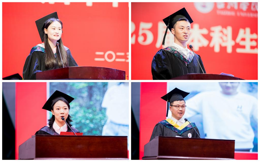 At the Linhai campus, Wang Siyu, a graduate majoring in Chinese Language and Literature from the School of Humanities, reflected on four years of memories and progress by sharing two moments from her social media posts. She shared the university motto, “continuously improve ethical conduct and make timely progress in learning”, as words to live by together with her classmates—taking virtue as the root, learning as the path, and application as the destination. Together with her peers, she resolved to always keep alive a curiosity for the world, a reverence for knowledge, and a love for life.