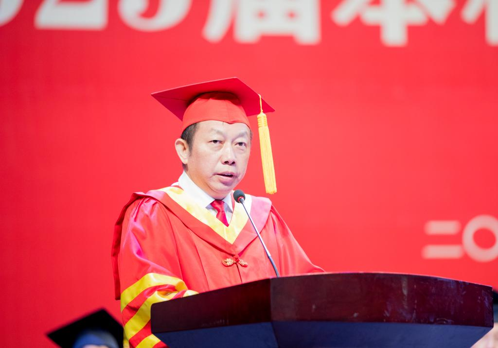 At the Linhai campus, Su Chang, a faculty representative from the School of Marxism, explored the important topic of life’s value from a philosophical perspective. He encouraged graduates to discover true value through love of truth, love of freedom, and love of oneself, urging them to live with integrity and conscience and become the pride of the university.
