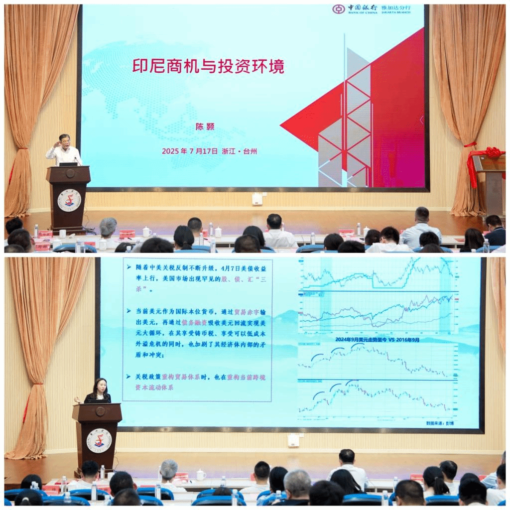 Feng Min from the Financial Markets Department of Bank of China Zhejiang Branch delivered a professional briefing on “Foreign Exchange Rate Outlook and Hedging Instruments”, while Chen Hao, Deputy General Manager of Bank of China Jakarta Branch, presented a keynote report on “Business Opportunities and Investment Environment in Indonesia”, bringing participants advanced perspectives on finance and law.