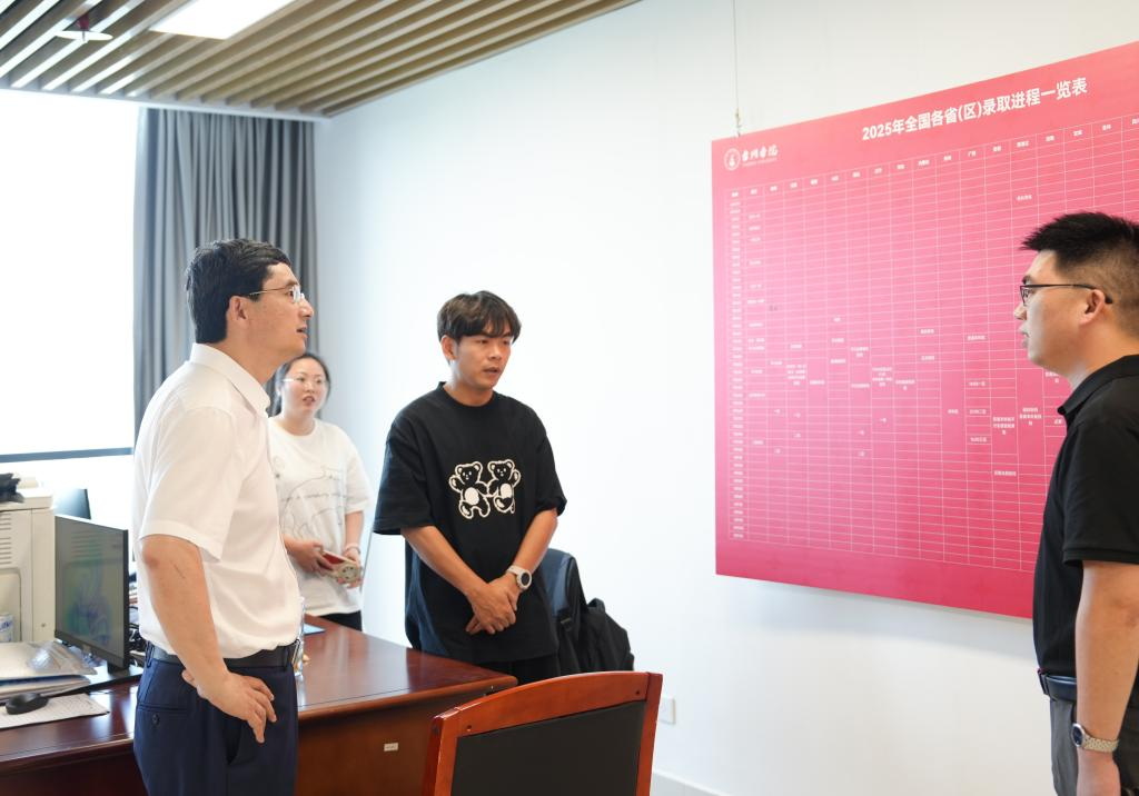 As the nationwide undergraduate admissions process is underway, Zhu Jian, Secretary of the CPC TU Committee; Le Chuanyong, President and Deputy Secretary of the CPC TU Committee; and Li Jianjun, Vice President and Party Committee Member, recently visited the University’s admissions office to provide guidance and convey their appreciation to staff.
