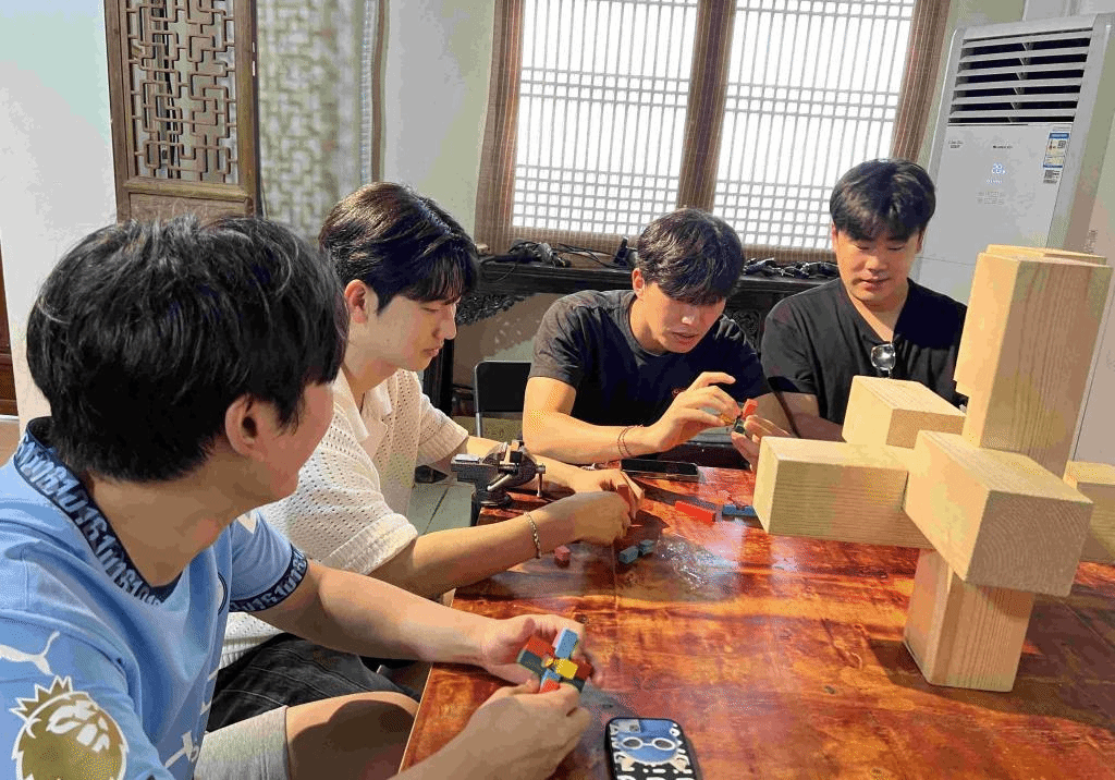 Later, at the Hehe Culture Park, the group participated in a hands-on workshop to create a traditional mortise and tenon craft. They learned about the “One Vine” technique, a Zhejiang Provincial Intangible Cultural Heritage item. This unique craft, originating from the Ming Dynasty, uses wooden structures and mortise-and-tenon assembly to simulate the spreading form of a vine, representing a form of Eastern installation art. After the introduction, the students tried their hands at assembling the representative Luban Lock, engaging in a friendly group competition that was both educational and enjoyable.