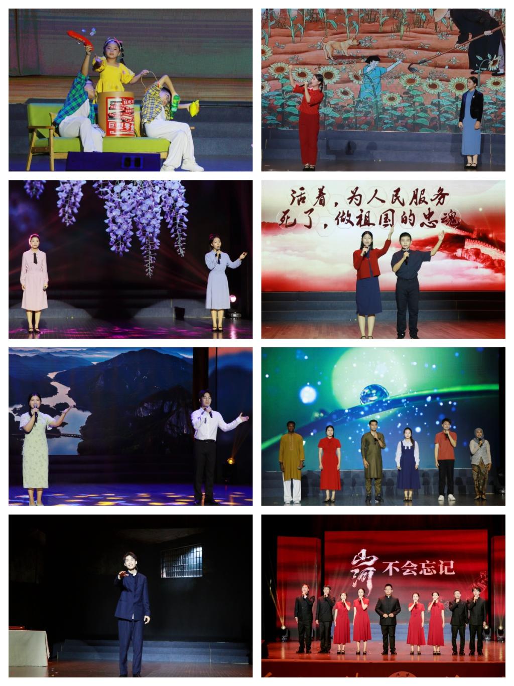 The second chapter, “Everlasting Spirit,” opened with an excerpt from Tales of Hulan River, performed by the Yuzhilin Club, which warmly depicted northern Chinese customs and human emotions. A rendition of The Purple Vine Waterfall then invited the audience to reflect on the vitality of life. Alumni Li Zhiyun and Wang Qiqian performed My South and North, using expressive voices to outline the vast and diverse landscapes of the motherland. The Yuzhilin Club returned to the stage with The Spirit of Red Crag, their resounding voices paying tribute to the firm belief of revolutionary martyrs.