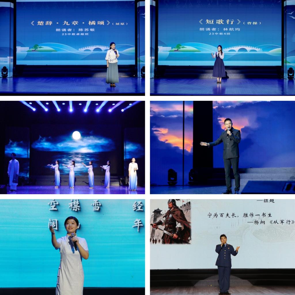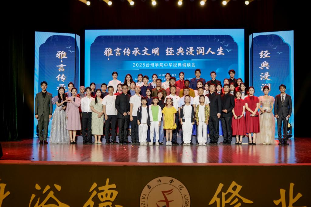This recitation event was hosted by the University Academic Affairs Office and organized by the School of Humanities and the Zhejiang Language and Character Promotion Base at TU. It was co-organized by Jin Niya Studio, the Taizhou University Fengya Recitation Club, the Yuzhilin Club of Taizhou University Affiliated Middle School, and the Zheshang Primary School Guangwen Recitation Club.