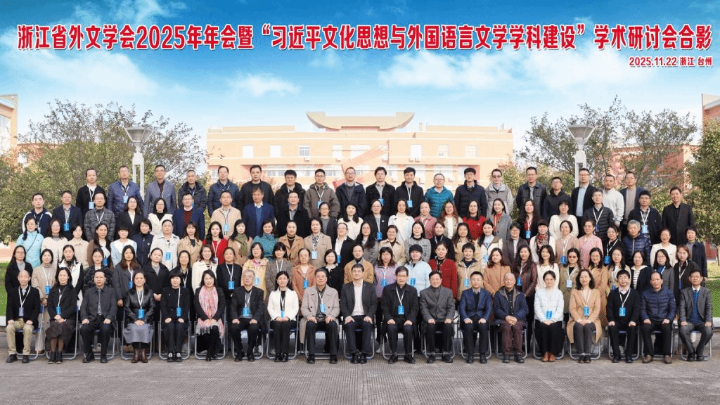 From November 21 to 23, the 2025 Annual Conference of Zhejiang Association of Foreign Languages and Literatures (ZAFLL) and the Academic Seminar on “Xi Jinping Thought on Culture and the Development of Foreign Language and Literature Disciplines” was held at our university. Zhu Jian, Secretary of Taizhou University Party Committee, attended the opening ceremony and delivered a welcome speech. Jiang Chengyong, former Chairman of Zhejiang Federation of Humanities and Social Sciences Circles (ZJFHSSC), Ding Yi, President of Shanghai Foreign Language Education Press (SFLEP), and Zhou Min, President of ZAFLL, delivered speeches respectively. The opening ceremony was hosted by Wang Gang, Dean of the School of Foreign Languages.