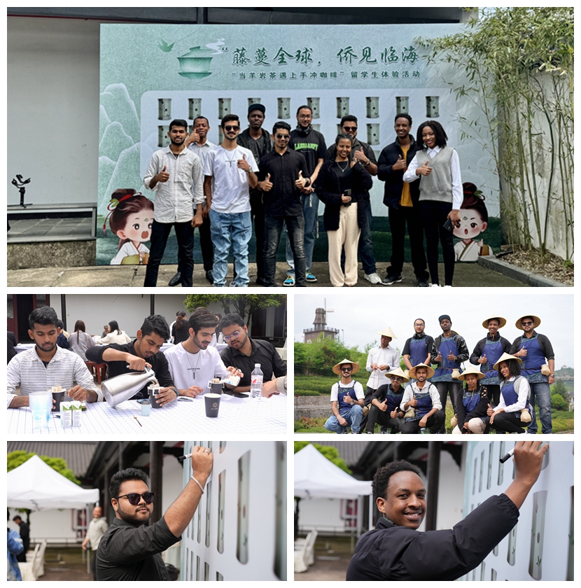 On April 26, a cultural exchange activity entitled “When Yangyan Tea Blended with Hand-Brewed Coffee” was jointly organized by Linhai Overseas Chinese Federation, Linhai Government Information Office and TU International School in Yangyan Mountain Tea Garden, in which 10 international students from Bangladesh, Morocco, Rwanda and other countries participated.