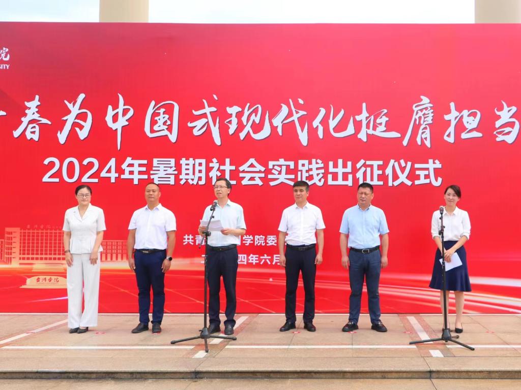 TU’s 2024 Summer Social Practice Departure Ceremony was successfully held at the Linhai Campus on the morning of June 29th. Xiang Fengri, Deputy Secretary of the CPC TU Committee, Cai Haijiang, Member of the CPC TU Standing Committee and Head of the Publicity Department, Yang Qifu, Head of the Student Affairs Department, Xia Yanfeng, Head of the Security Department, and Zhou Yao, Dean of the School of Entrepreneurship, were invited to attend the event. The secretaries of the school branch committees and representatives of the practice team participated in the ceremony. Pan Yao, Secretary of TU’s Youth League Committee, presided over the event.