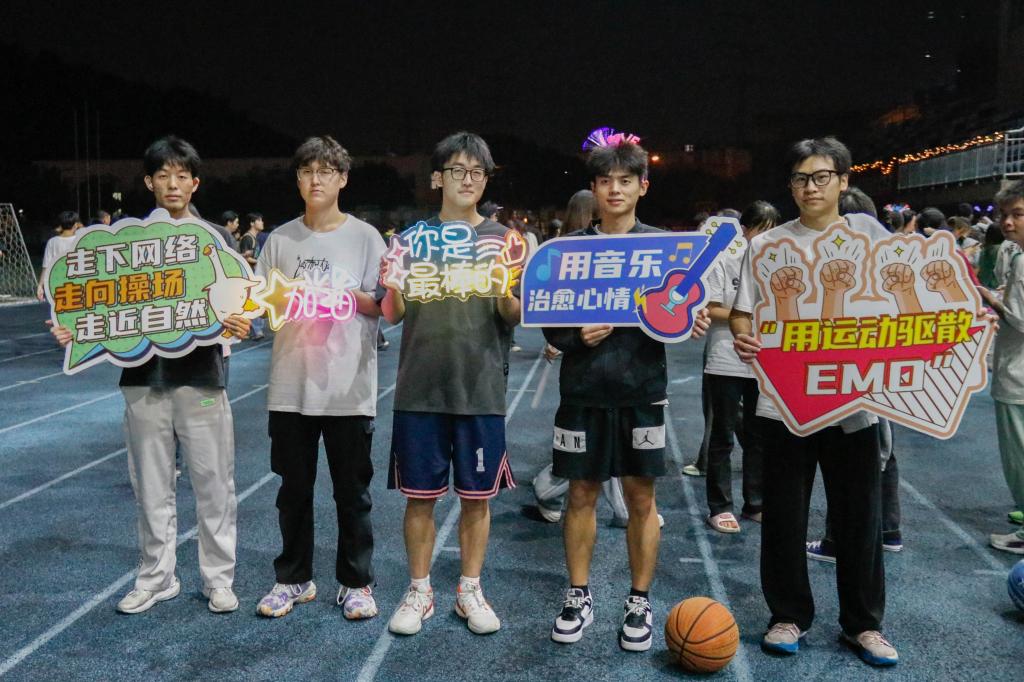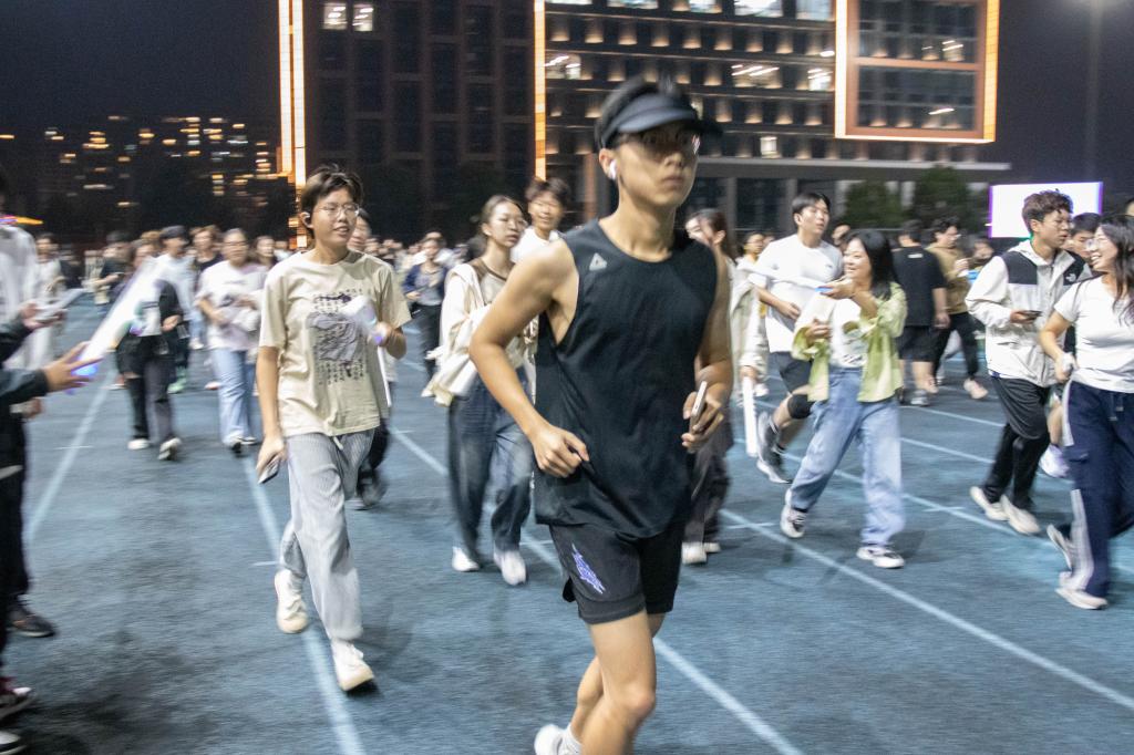 As night fell, the playground was brightly lit. The shimmering fluorescent lights and dynamic music added some vitality to the peaceful night. Nearly 2000 students actively participated in the activity. After wearing fluorescent bracelets and light sticks, all the students started their night jogging at a brisk pace. Accompanied by melodious songs, they shed their youthful sweat to run forward. With dots of fluorescence converging on the runway and turning into a flow of light bands, young students enjoyed the release of youthful energy by chasing after each other and encouraging each other.