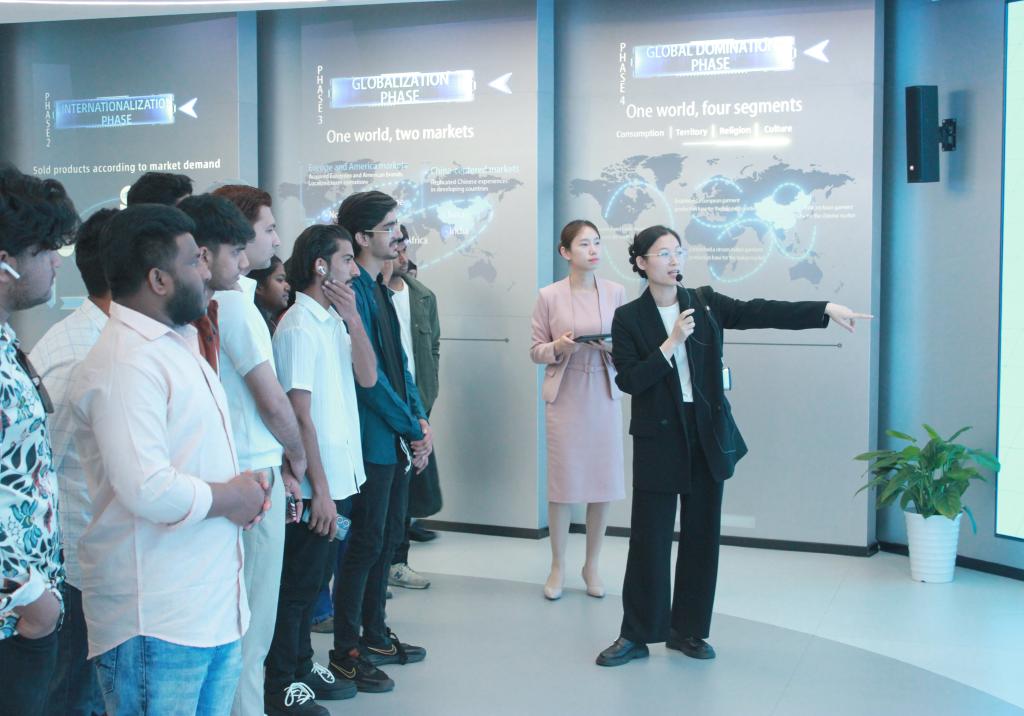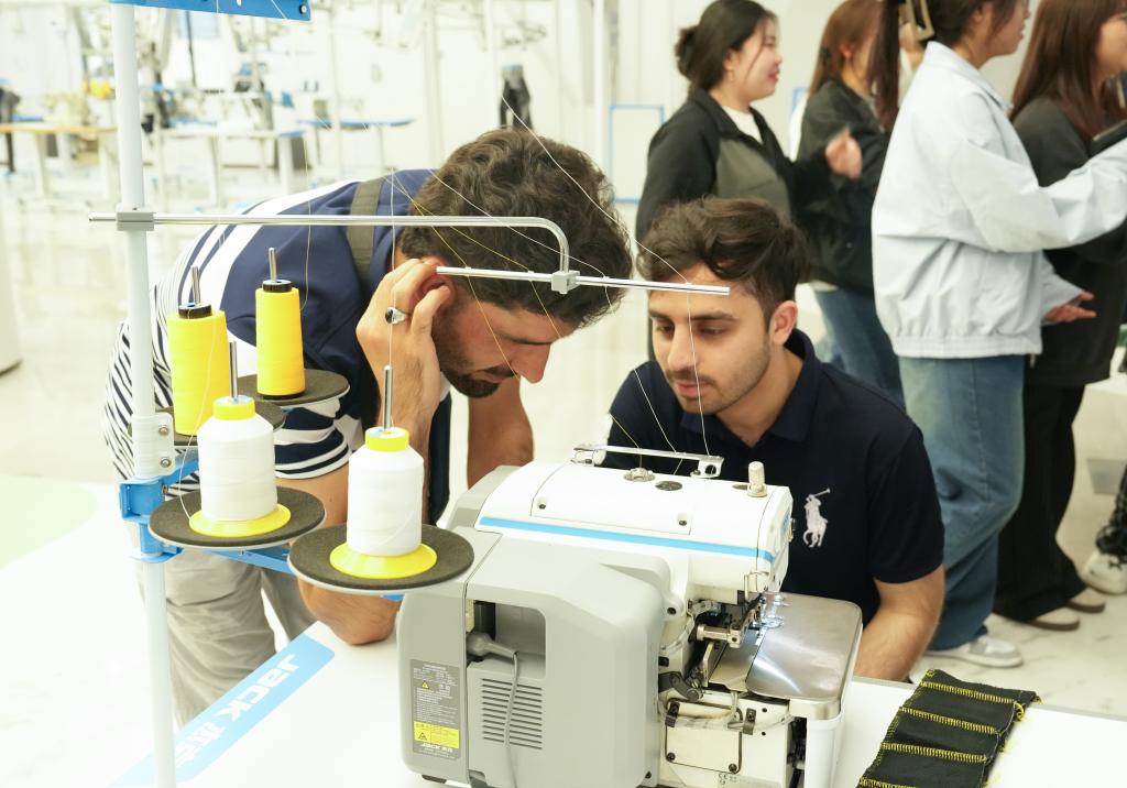 Guided by staff, the students toured Jack’s digital exhibition hall, sewing machine museum, and product showcase. The company’s global footprint—with products sold in over 170 countries and R&D centers spanning Europe and Southeast Asia—left the visitors in awe. At the sewing machine museum, the group witnessed the evolution from traditional mechanical devices to AI-driven smart systems. “In my country, I’ve seen people who use old-fashioned sewing machines, but Jack’s intelligent models are revolutionary!” remarked Pakistani student Ullah Kaleem.