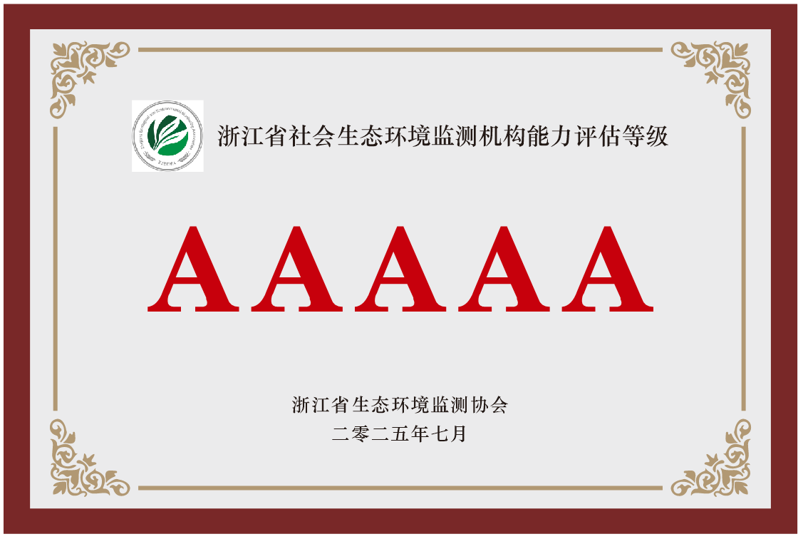 Zhejiang Social Ecological Environment Monitoring Institution Capability Assessment is organized by the Zhejiang Ecological Environment Monitoring Association. It employs an expert panel from provincial and municipal monitoring centers to evaluate institutions’ technical strength, equipment, comprehensive capability, and, most importantly, data accuracy. This is the most stringent assessment in the field, with ratings from 1A (lowest) to 5A (highest).