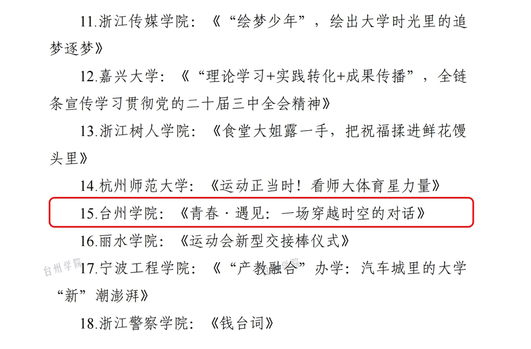 Taizhou University’s “Youth · Meet: A Dialogue Across Time and Space,” was successfully entered the 2024 list of exemplary integrated-media projects in Zhejiang education released by News Office of Zhejiang Provincial Department of Education and Zhejiang Education Publicity Center. It is the first time a news report from the university has been included. This highlights the pivotal role of its integrated-media work in serving the central tasks of the CPC Party and the institution, especially its reach and impact in ideo-political education and the transmission of revolutionary spirit.
